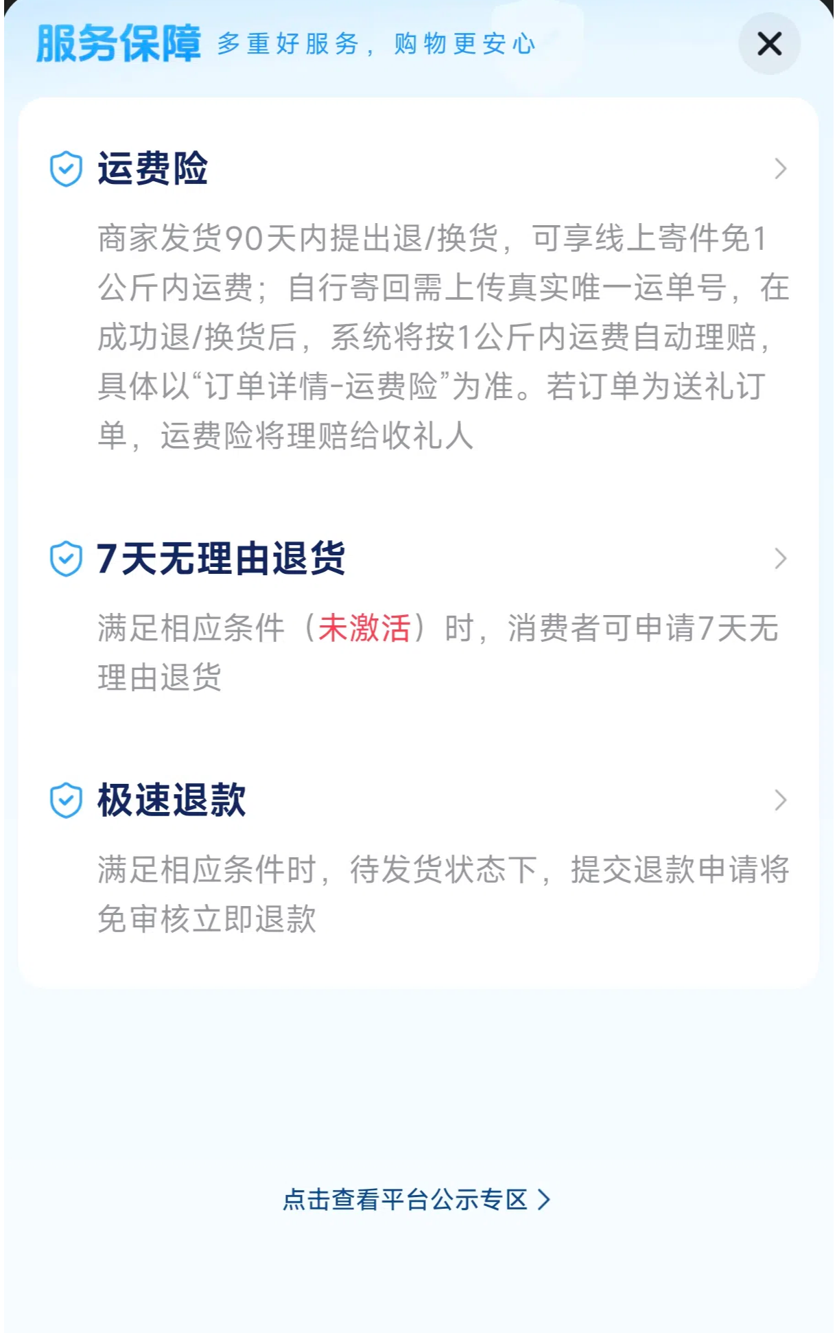运费险 · 七天无理由退货 · 极速退款